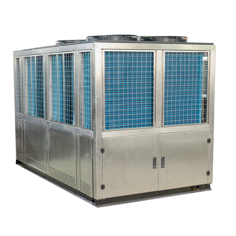 a、風冷式冷凍機組采用法國進口高效率耐氟電機,效率高,可靠性佳;