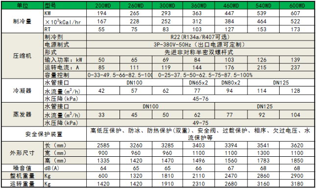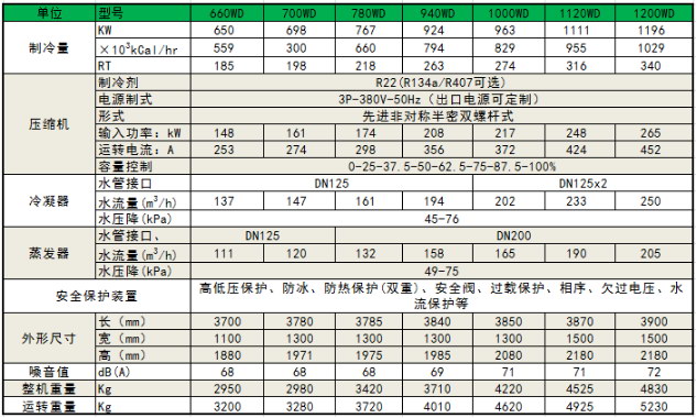 水冷螺桿式工業(yè)冷水機組---參數(shù)表: