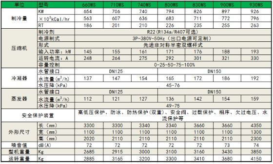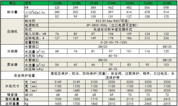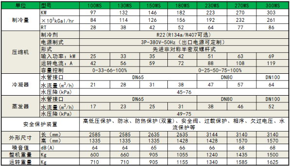 水冷螺桿工業(yè)冷水機(雙機頭)---參數(shù)表: